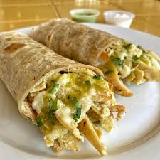 Gran burrito con salsa a escoger, acompañado de huevo, proteína a elegir, quesos, crema, cebolla, cilantro y frijoles.