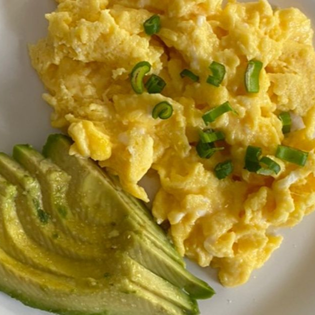 Huevos revueltos con ingrediente a elegir, acompañados con 1 quesadilla, frijoles y tortillas.