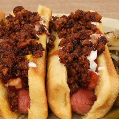 2 Piezas de molletes con base de frijol, chorizo, queso monterrey, crema, cebolla y cilantro.