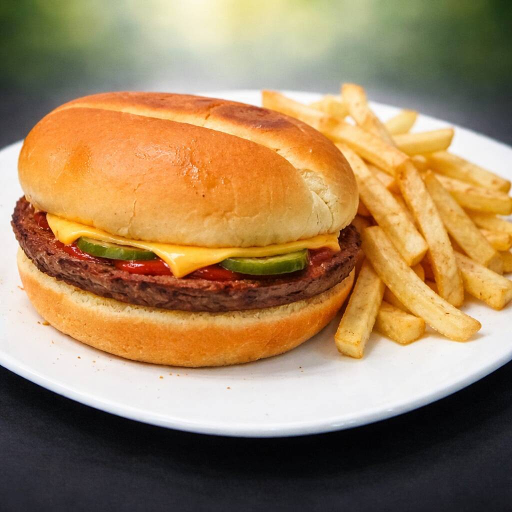 Cheeseburguer con Papas y Soda