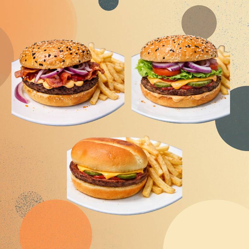 Bacon Burger*1 + Clasic Burguer*1 + Cheeseburguer*1 + Orden de Papas Fritas*3