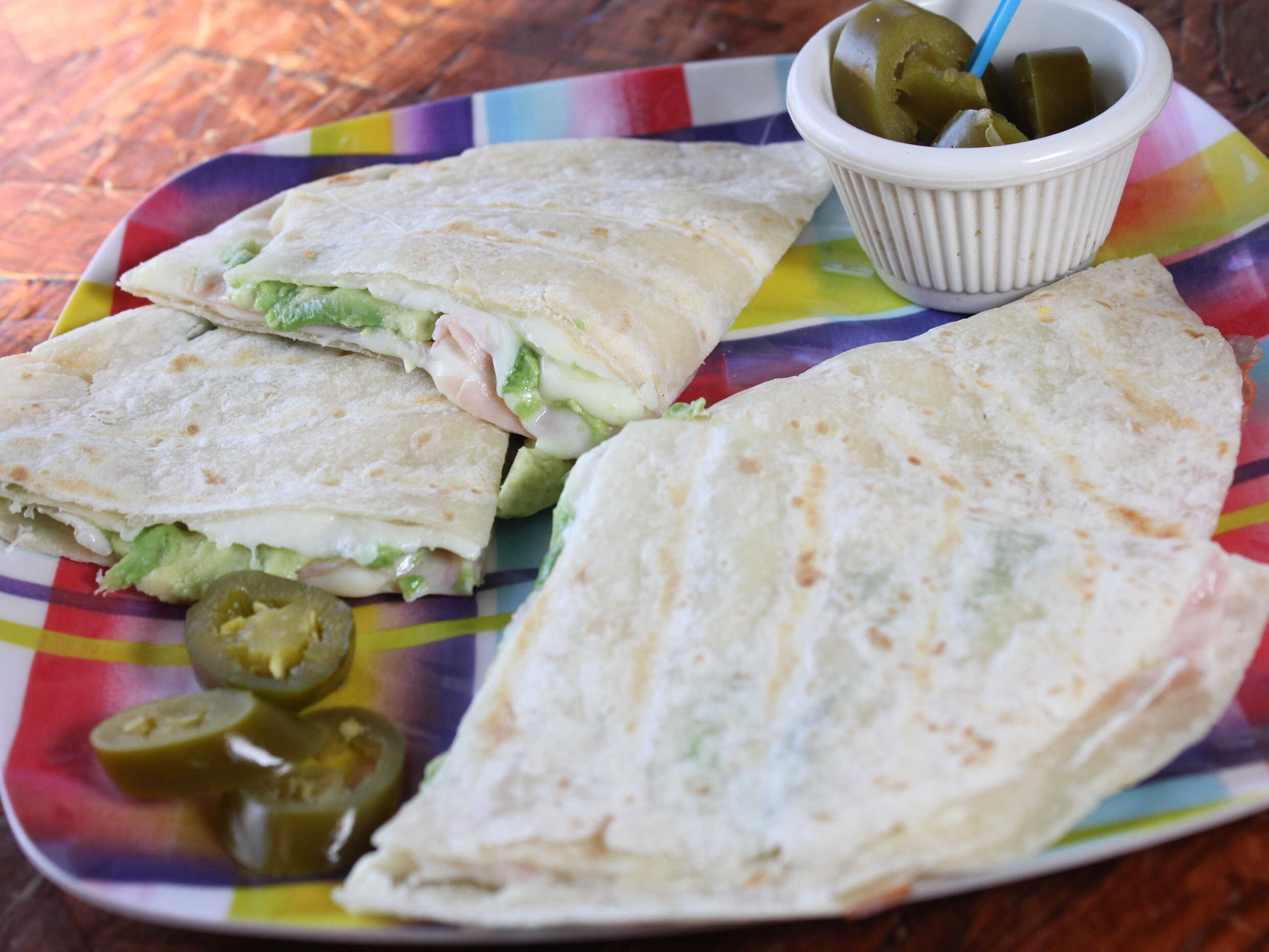 Quesadilla con queso suizo y jamón.