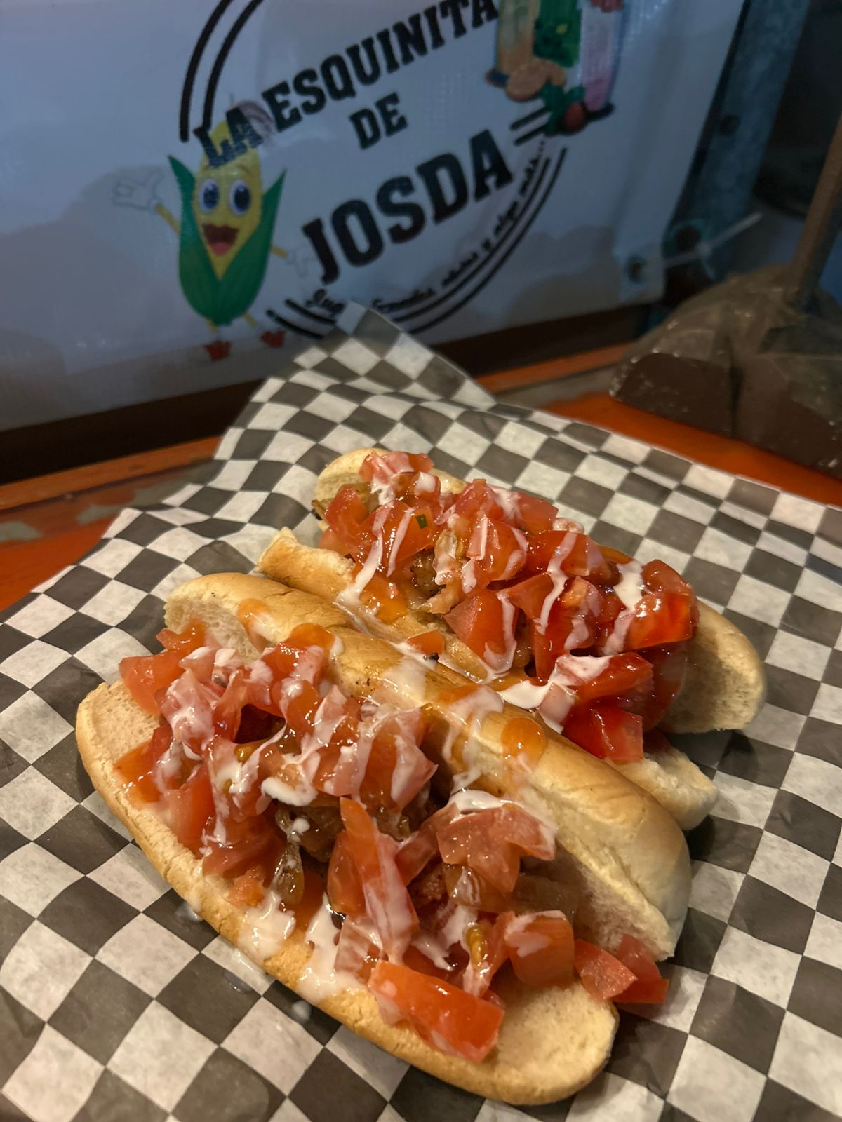 Pan suave con salchicha a la plancha, acompañados de mayonesa, mostaza, kétchup y jalapeños al gusto.