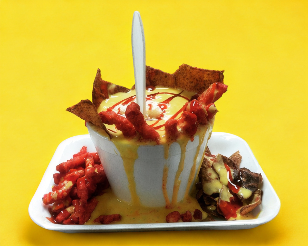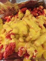 Cheetos flamin hot, con queso de nachos (se manda en vaso ) y chiles jalapeños