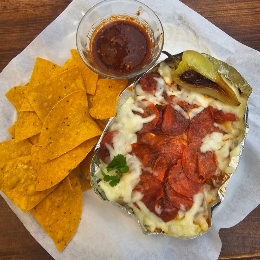 PEPERONI, SALSA RAGU Y QUESO MONTERREY.
