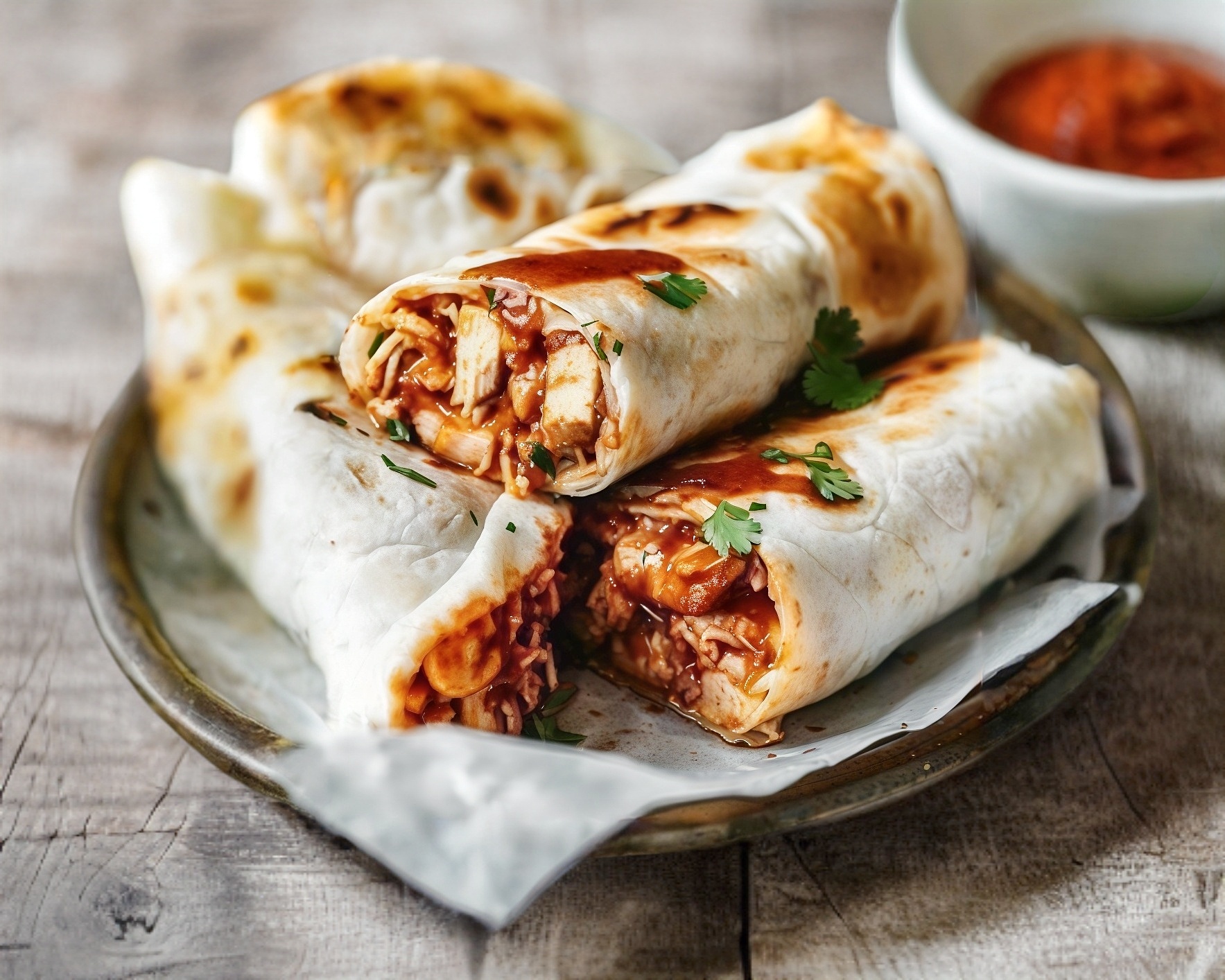 Burritos Con Tortilla De Harina Carne De Pozole ( Puerco )Frijol , Aderezo De Cilantro Especial Estilo Morocha , Salsa Macha Estilo Morocha Incluye "agua de tamarindo