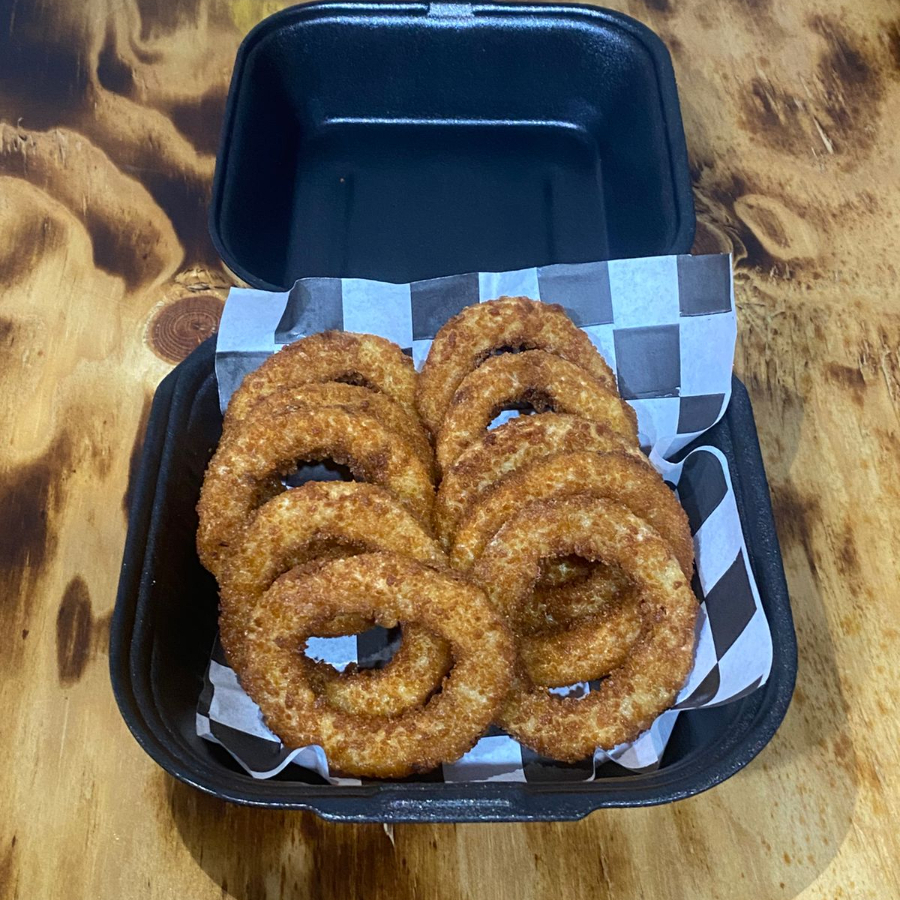 10 Aros de cebolla crujientes, perfectos para acompañar tu orden.