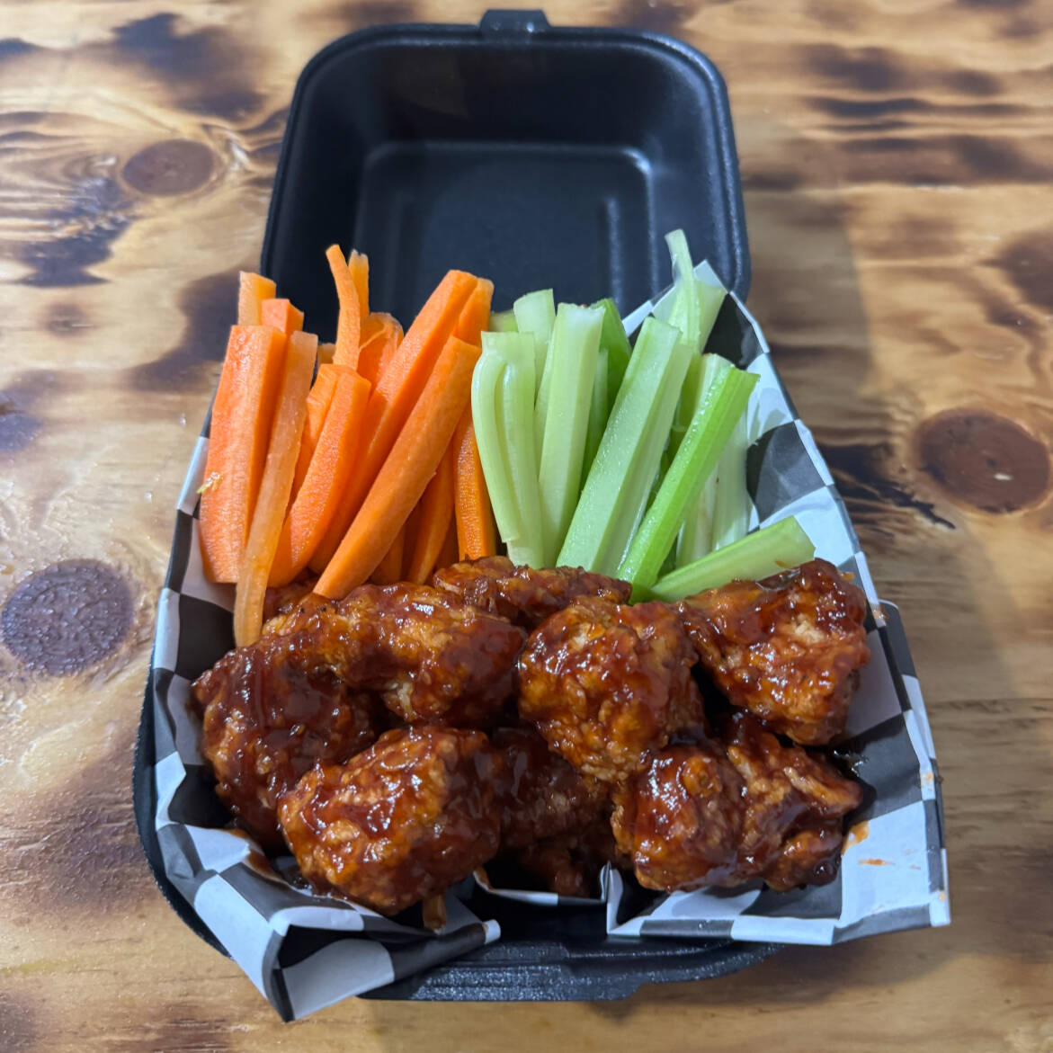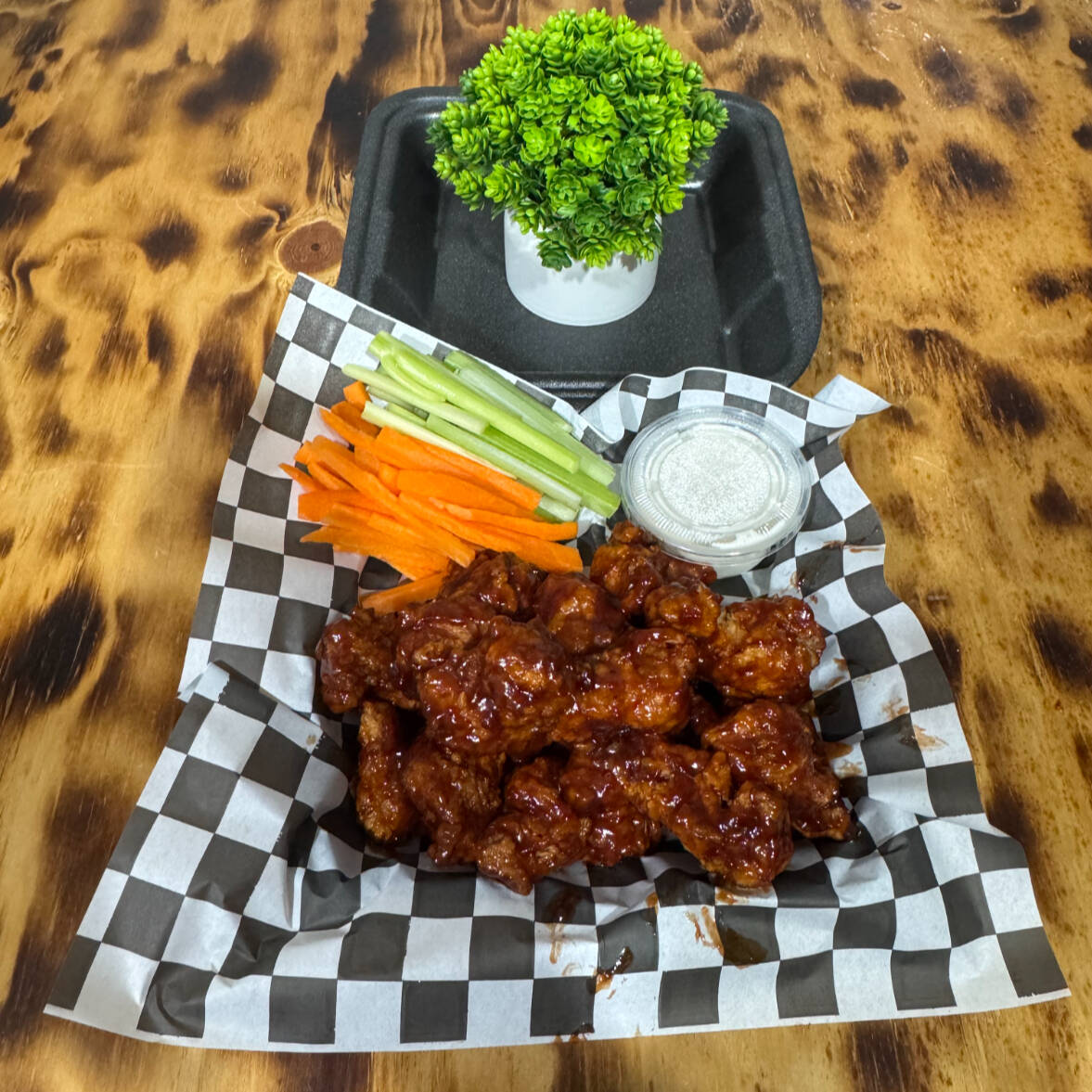 200g de boneless crujientes, preparados al momento, bañados en la salsa de su elección. Inlcuye aderezo ranch, apio y zanahoria.