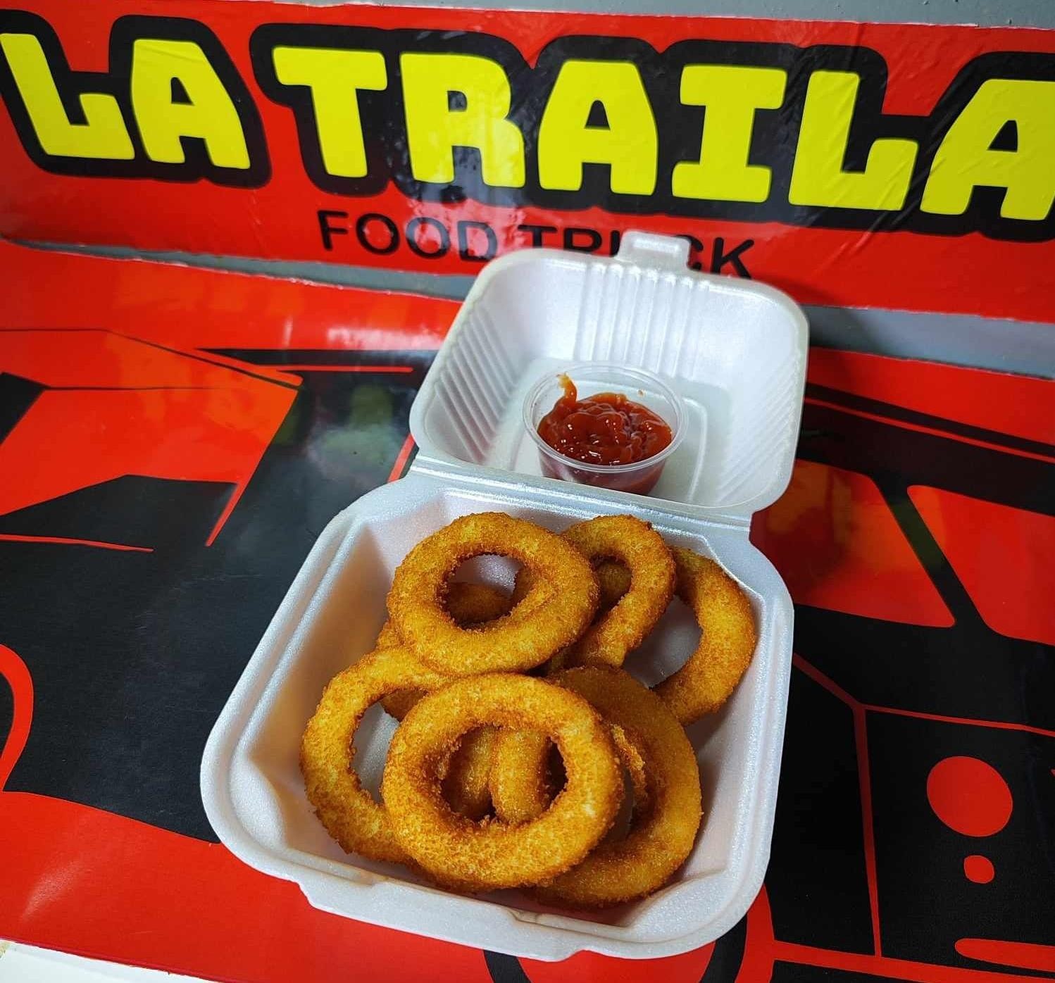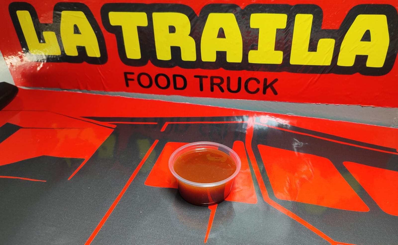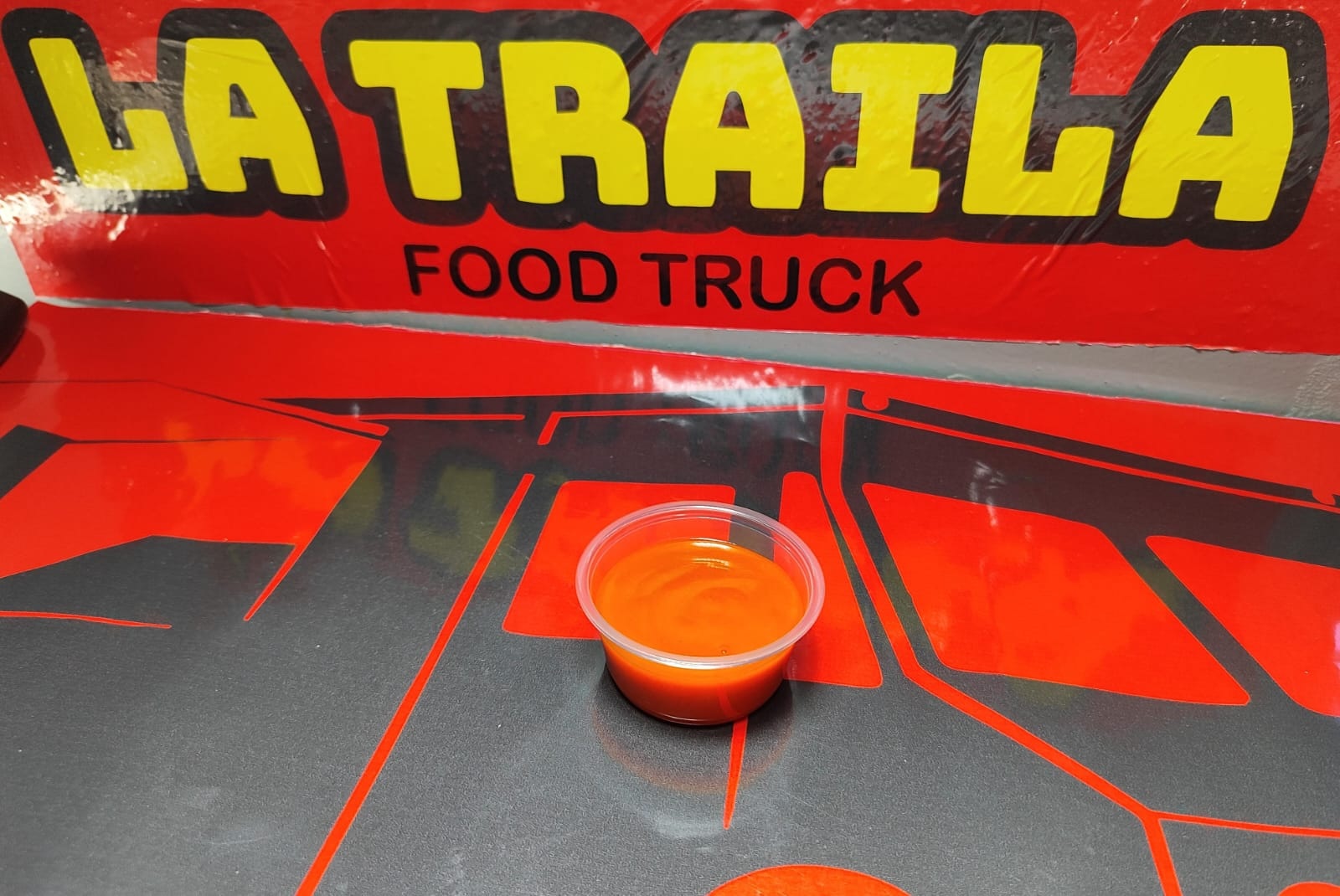 Trailera con por carne casera y pollo empanizado, aros de cebolla, tocino, queso blanco y amarillo mayonesa, mostaza catsup, tomate, lechuga en salsa de su preferencia.