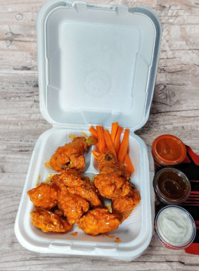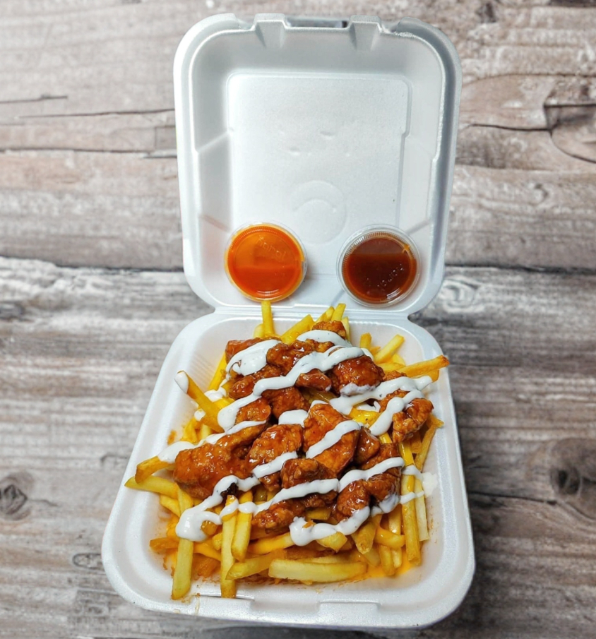 Boneless en salsa de tu preferencia sobre una cama de papas bañadas en queso y ranch.