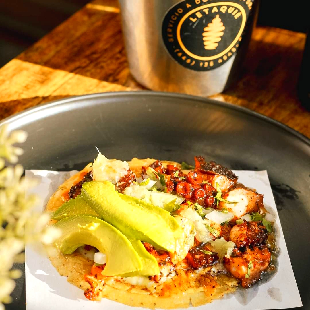 Pulpo, 20 tortillas,cebolla, cilantro, aguacate, salsas