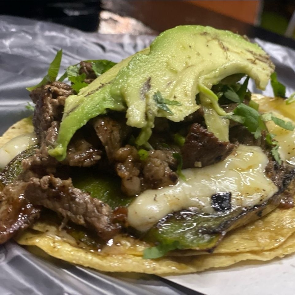 Triple, queso, cebolla, cilantro, aguacate, lechuga, tomate