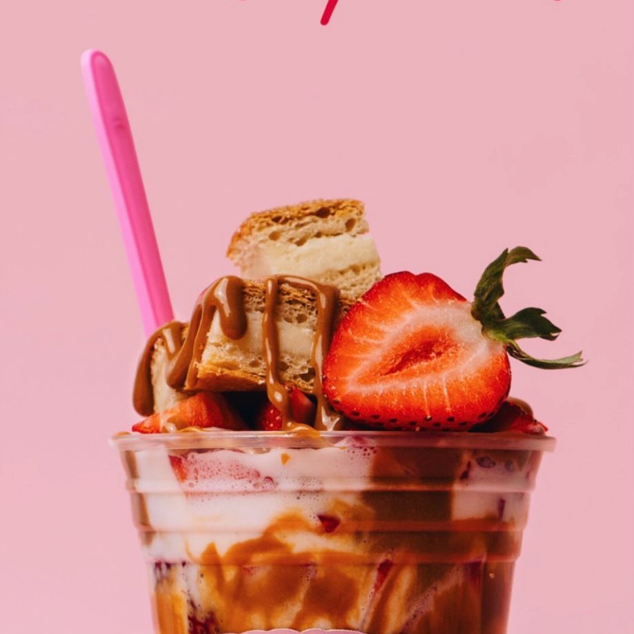 Vaso de 12 oz de fresas con chocolate, kataifi y crema de pistache casera