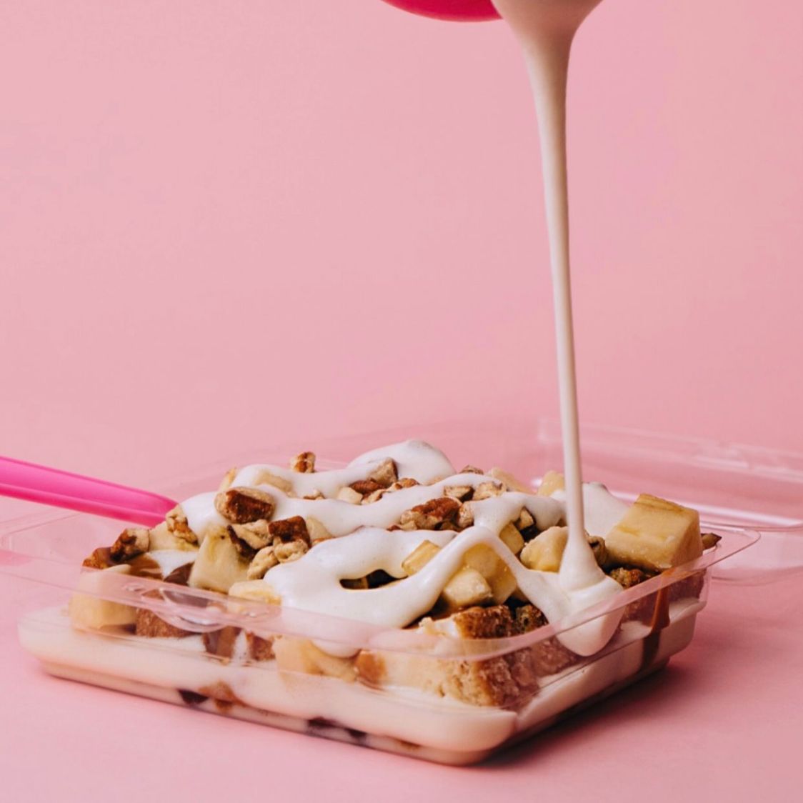 Postre acompañado de 1 jarabe + 2 toppings a elegir + 1 porción de crema