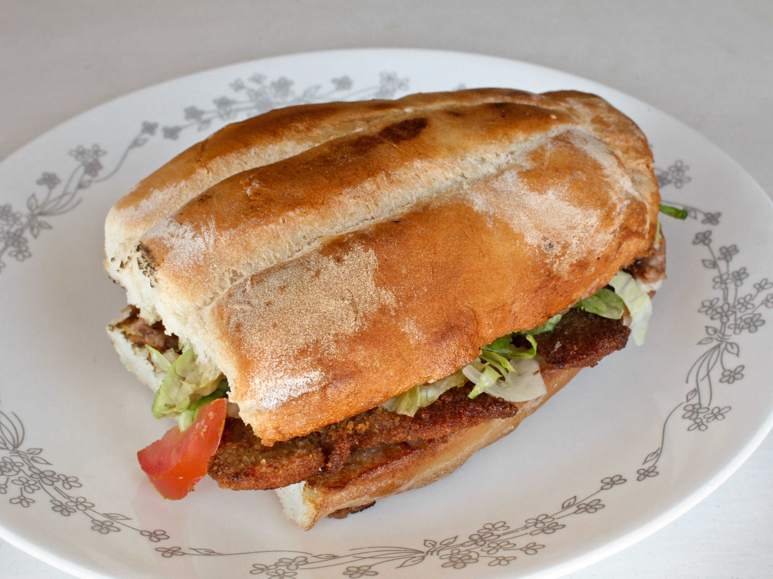De triple pan, lechuga, tomate y aguacate.