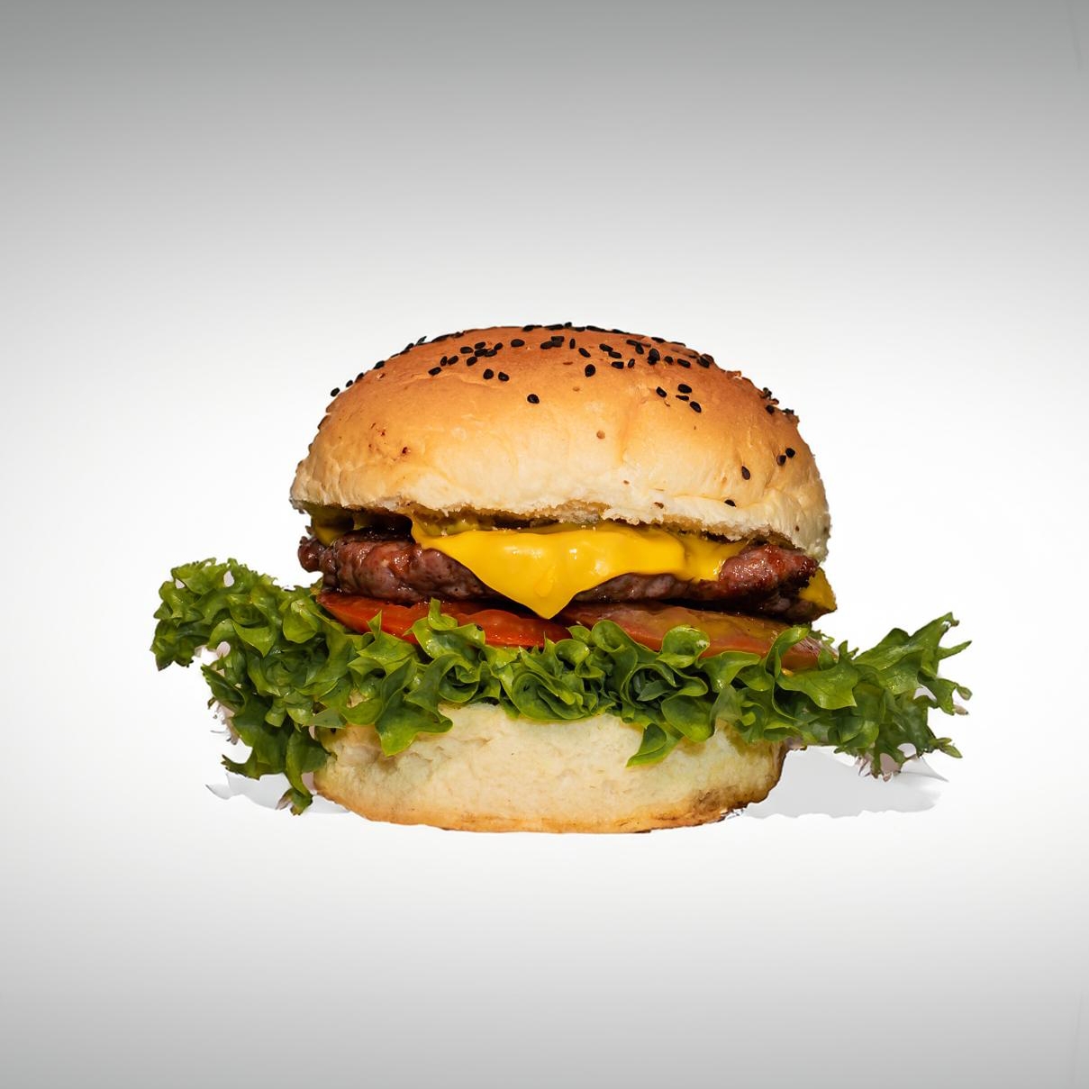 Con 150 gr carne de res, queso, lechuga y tomate