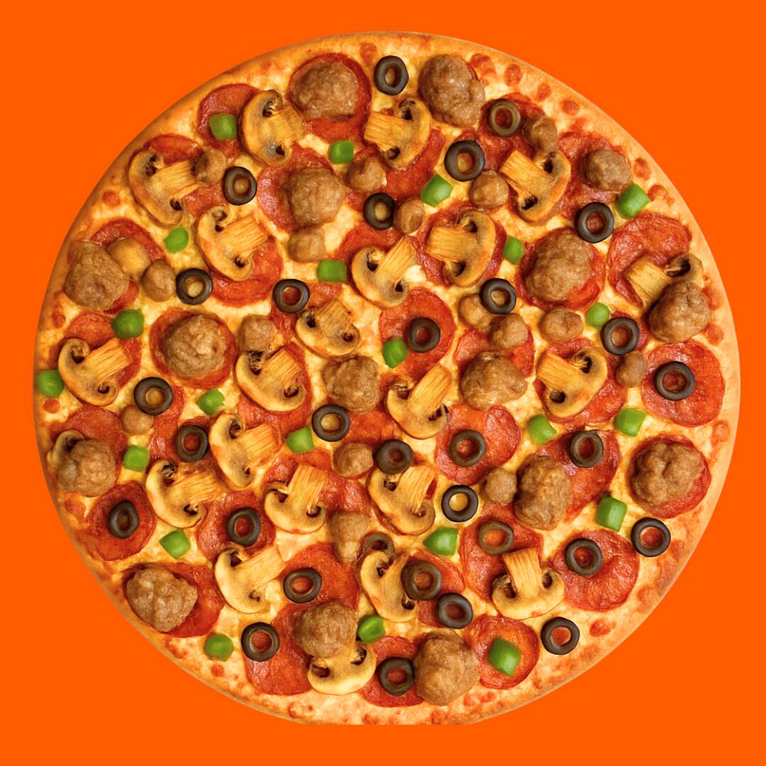 Pepperoni, Salchicha Italiana, Champiñon, Aceituna, Pimiento, 3 Quesos, 10 Rebanadas