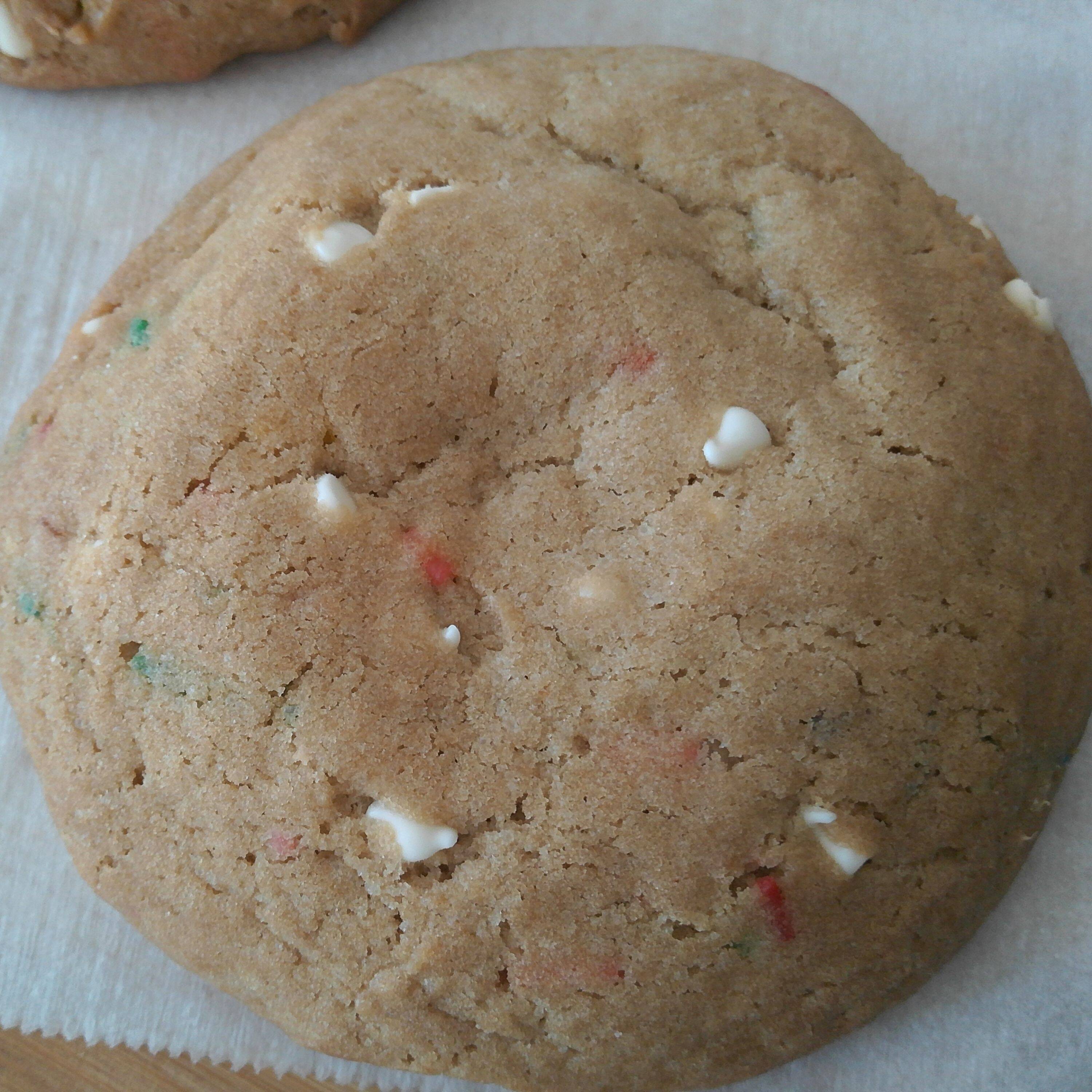 galleta de harina de trigo con chispas de chocolate blanco, sprinkles y relleno de philadelphia