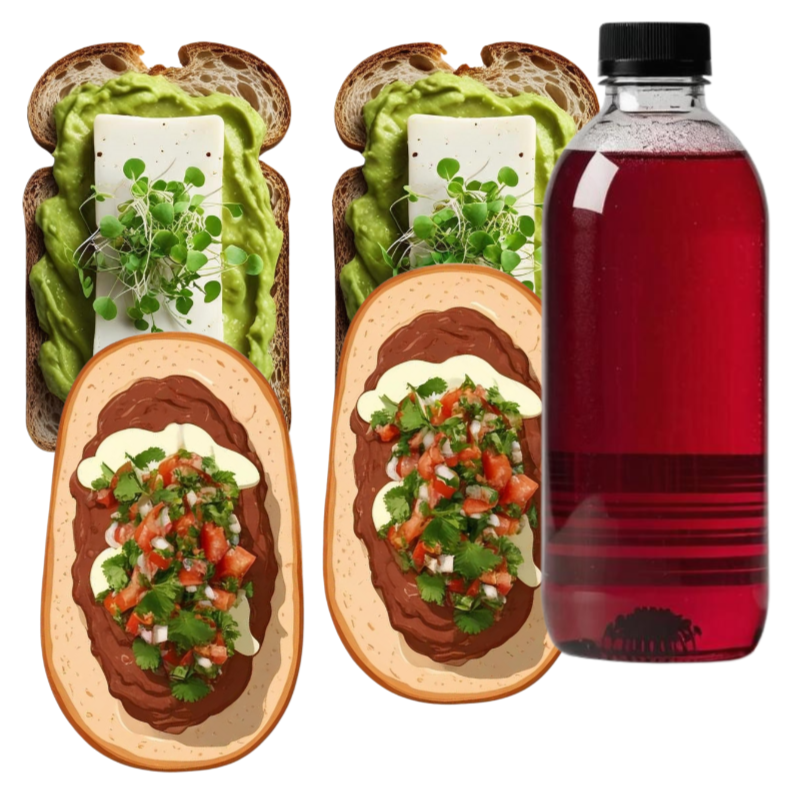 Toast de Aguacate*1 + Molletes con Frijol*1 + Agua Fresca Natural 500ml*1