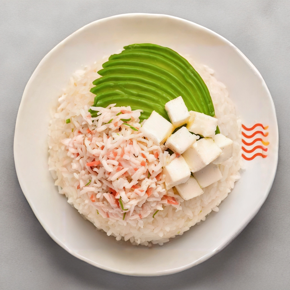 Orden de arroz japonés blanco, tampico, aguacate y philadelphia. Incluye aderezo chipotle y salsa anguila.