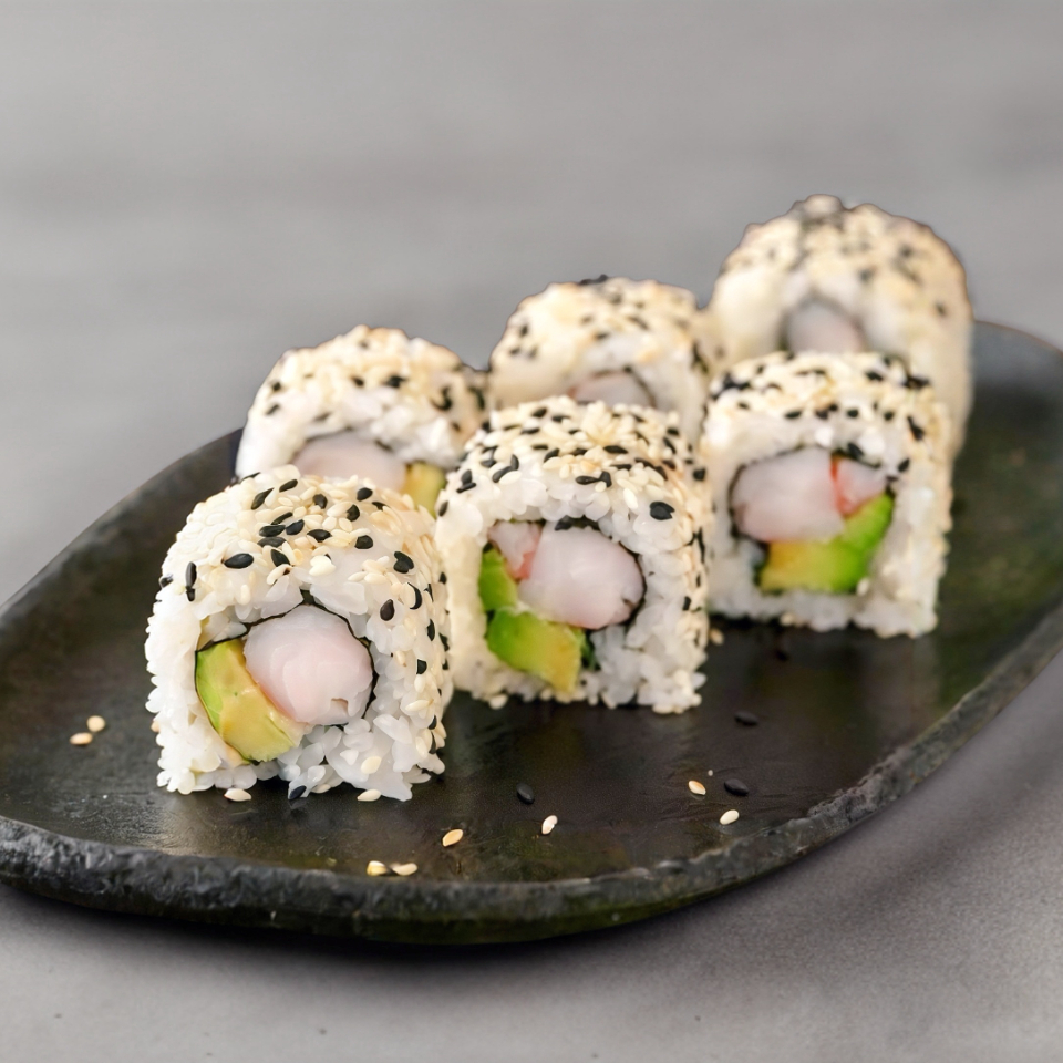 Con camarón, Philadelphia, aguacate y pepino. Incluye aderezo chipotle y chiles en soya.