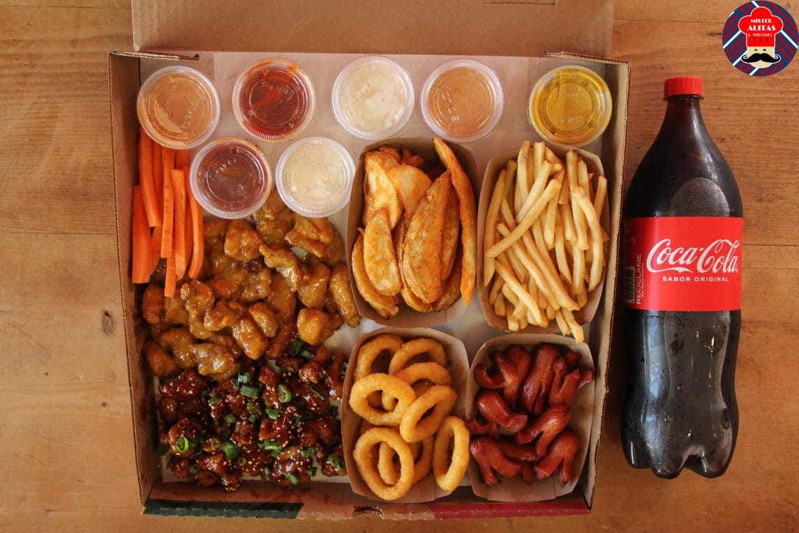 Soda de 1.5 Litros*1 + Papas a La Francesa*1 + Papas Sazonadas*1 + Aros de Cebolla*1 + Salchipulpos*1 + 1 KG BONELESS*1