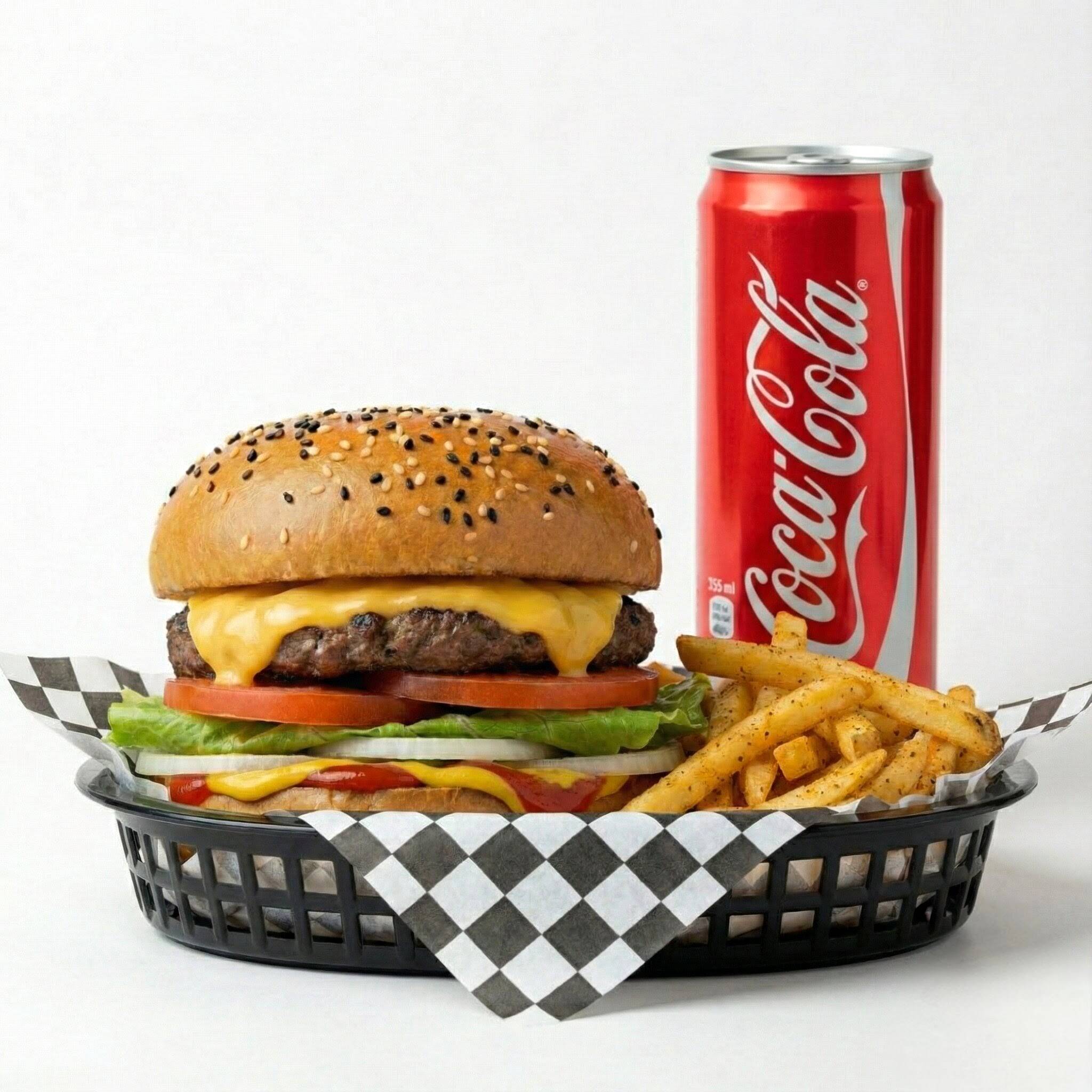 HAMBURGUESA SENCILLA*1 + Papas a La Francesa*1 + Bebida*1