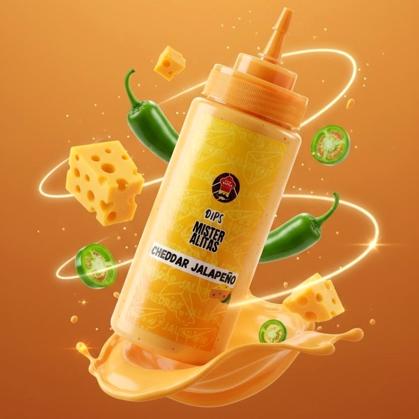 2 ONZAS DE DIP CHEDDAR JALAPEÑO MARCA PROPIA DE MISTER ALITAS