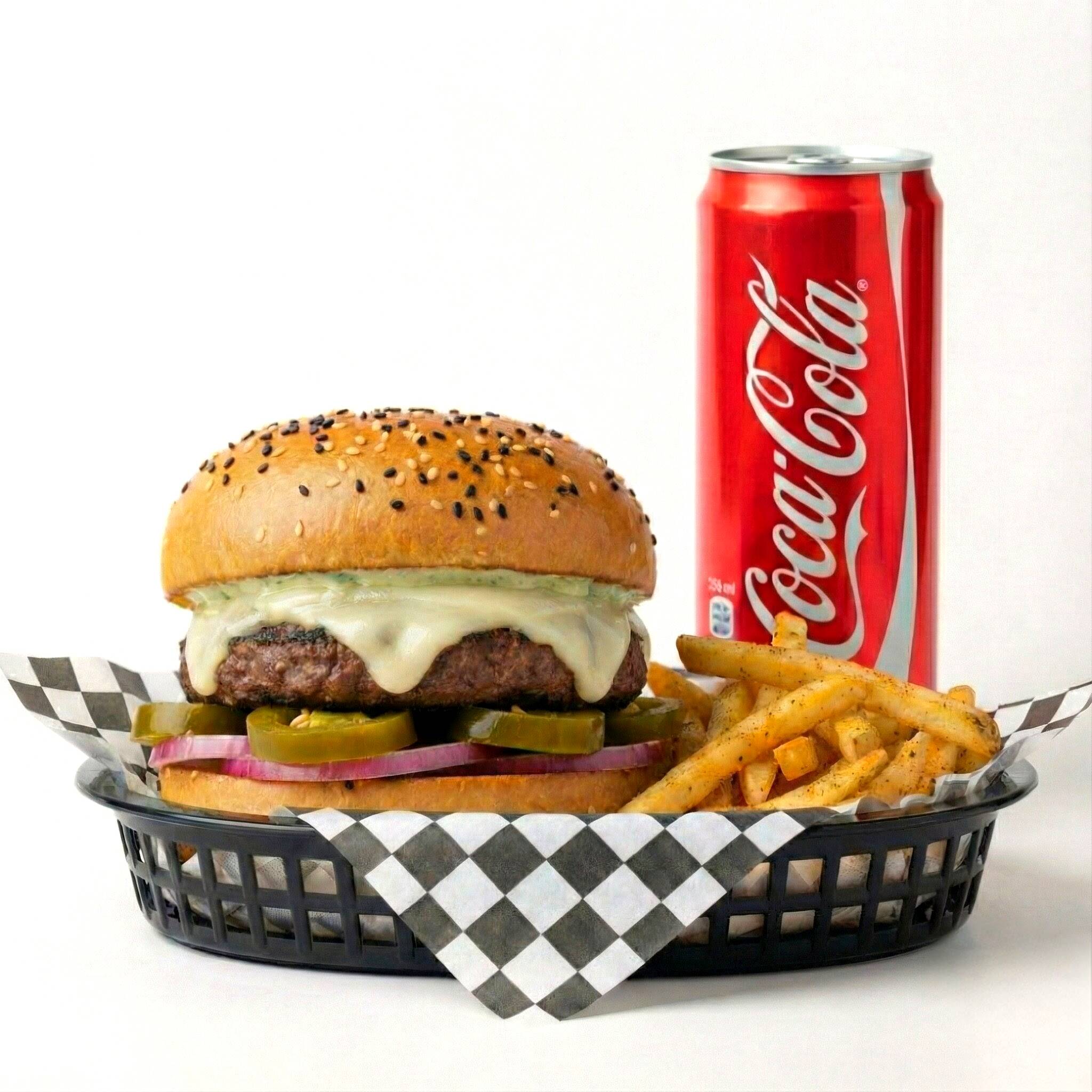 HAMBURGUESA JALAPEÑO HOT*1 + Papas a La Francesa*1 + Bebida*1