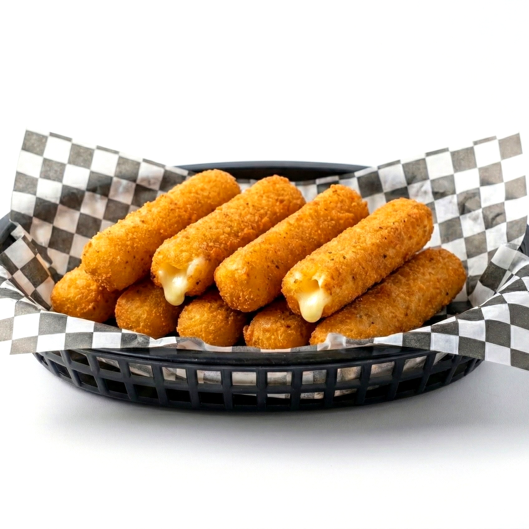 10 Piezas de dedos de queso mozarela, 1 aderezo ranch, 1 aderezo chipotle.