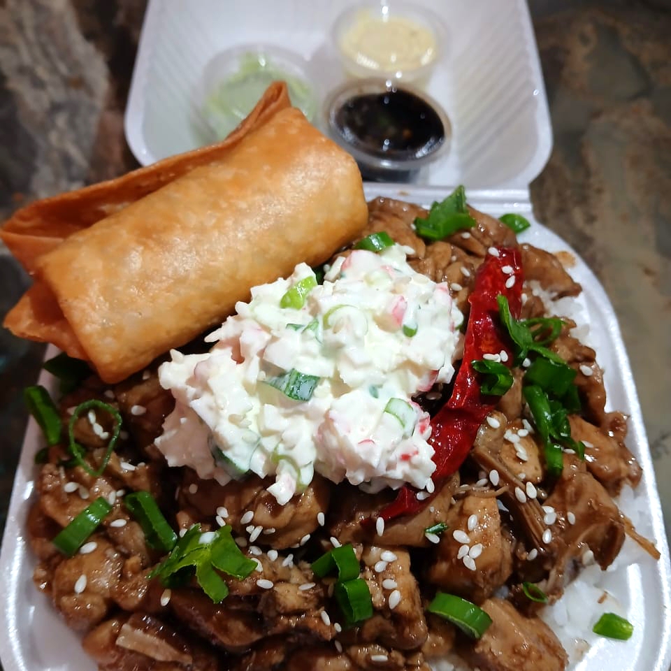 Rollo de Pollo con Surimi y Queso Crema*1 + Bowl Teriyaki*1 + Rollito de Queso Crema*1 + Ensalada tampico de surimi & Aderezos*1