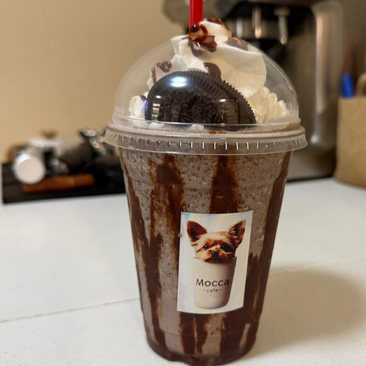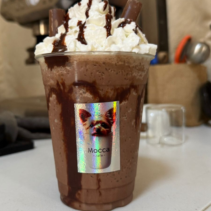 Un shot de espresso + 1 oz de ganache de chocolate en leche cremada y bombones (12 oz.)