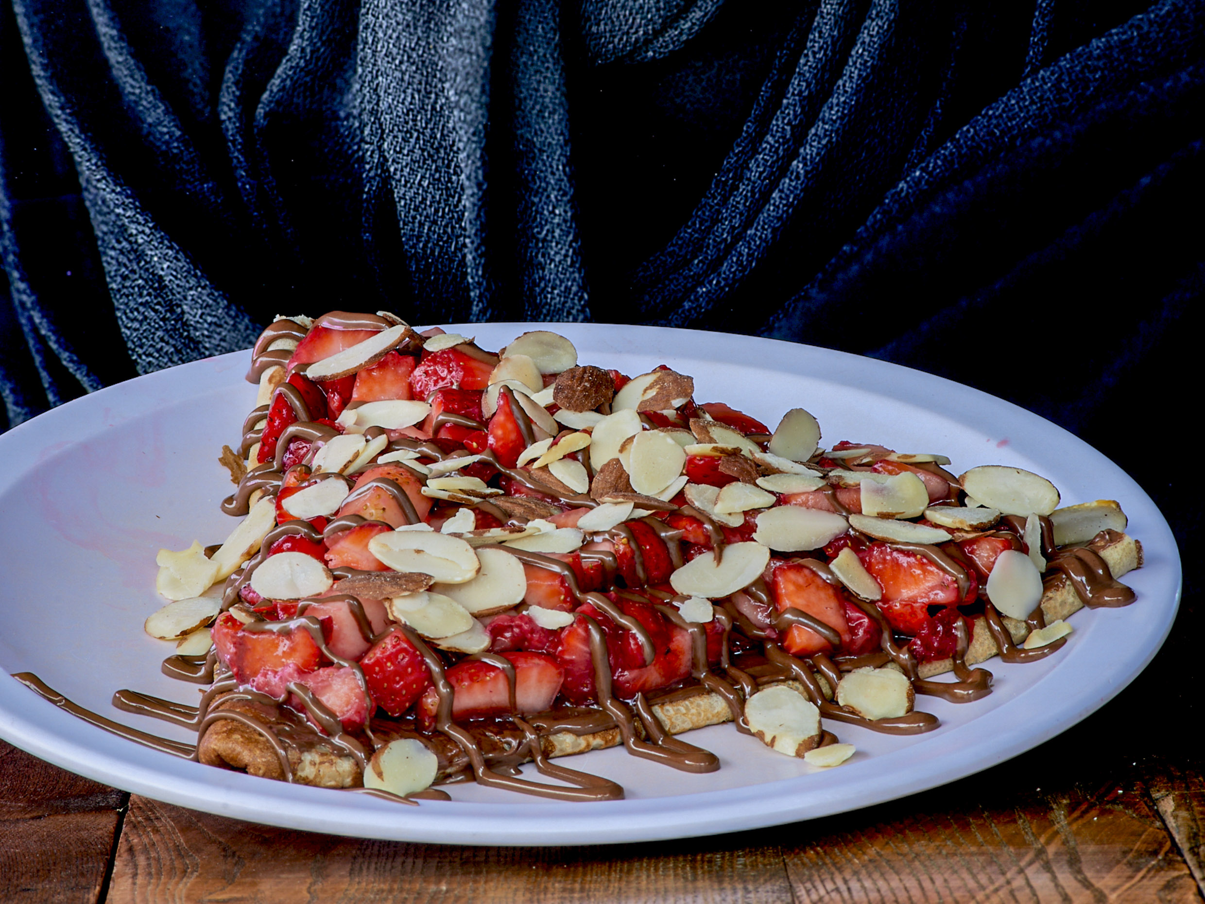 Queso Philadelphia, Nutella, fresas y almendras bañadas en Nutella.
