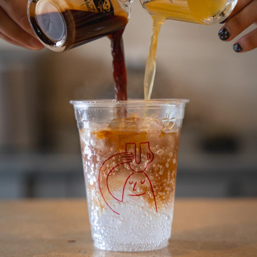 Bebida fría con shot de espresso, agua tónica y jarabe cítrico (limón amarillo, limón persa y naranja)