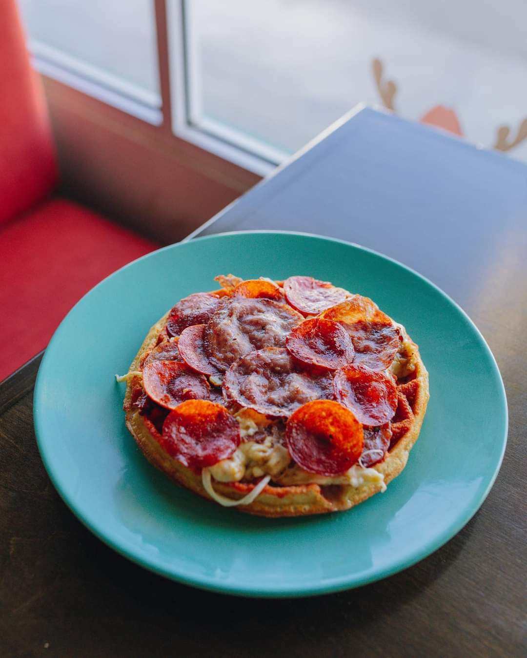 Jamón de puerco, pimiento asado, tocino, queso manchego.