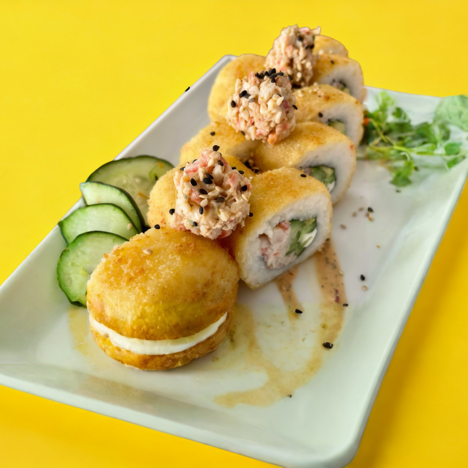 Medio Rollo California Empanizado*1 + Tepanyaki Chico*1 + Orden de Ensalada Oriental*1