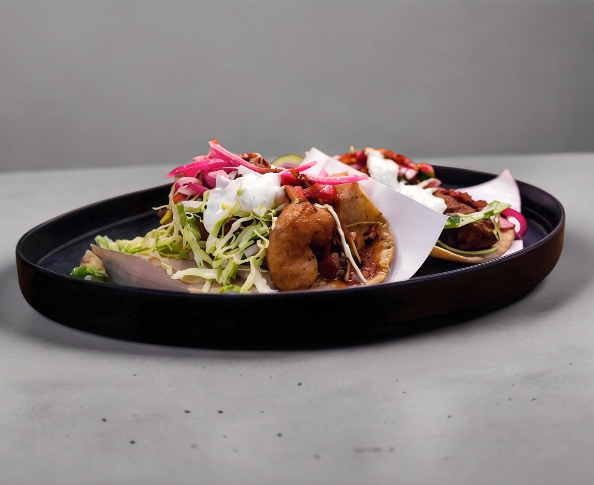 Pulpo asado, taco gobernador(2), flautas de marlin (3), chihcarrón de pescado y carnitas de atún