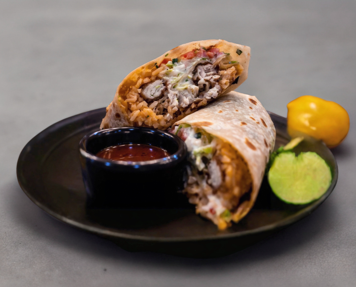 Acompañado de arroz blanco, vegetales en mantequilla y pan artesanal