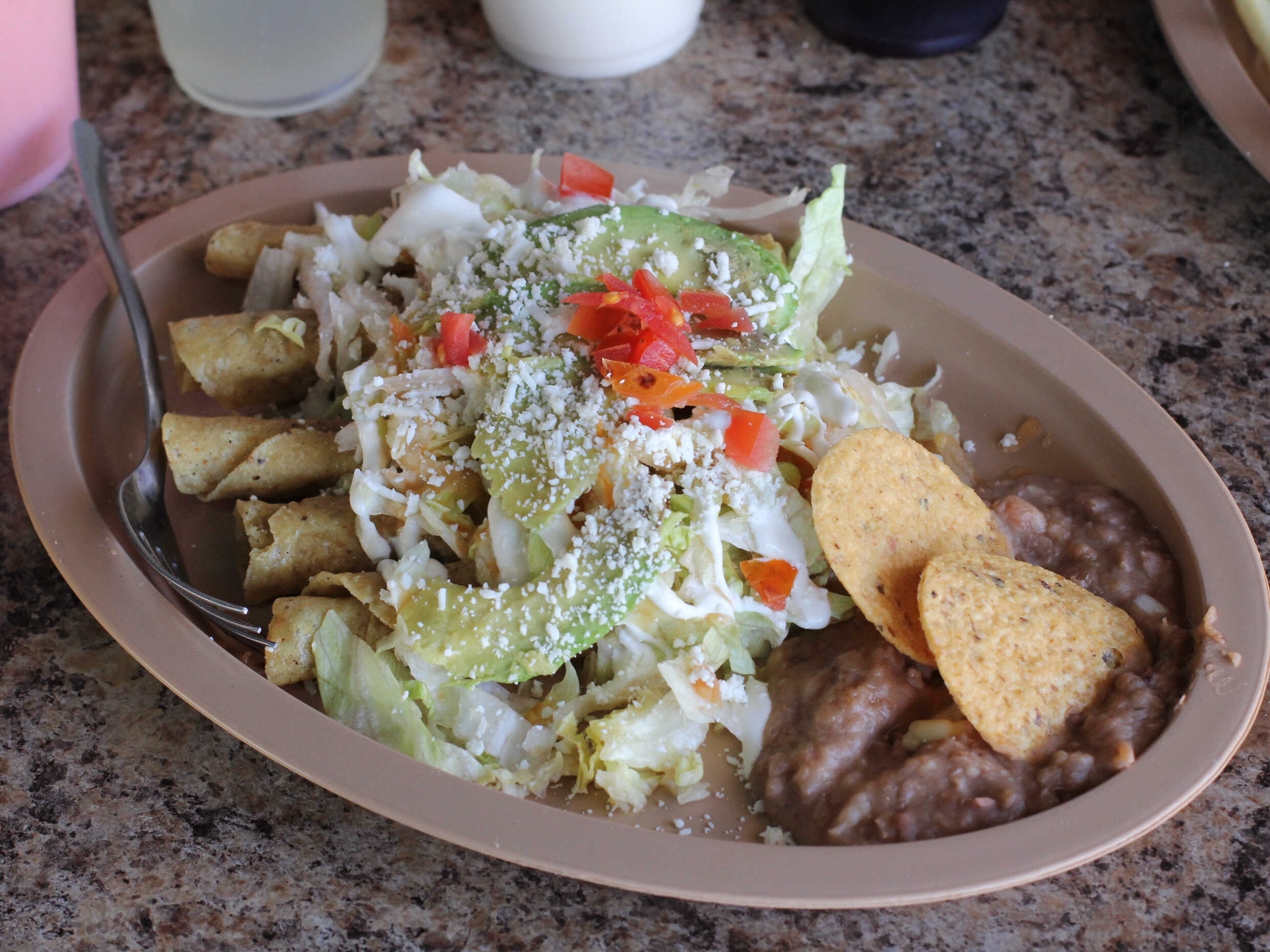 Burrito orden de 3 piezas con frijoles y ensalada.