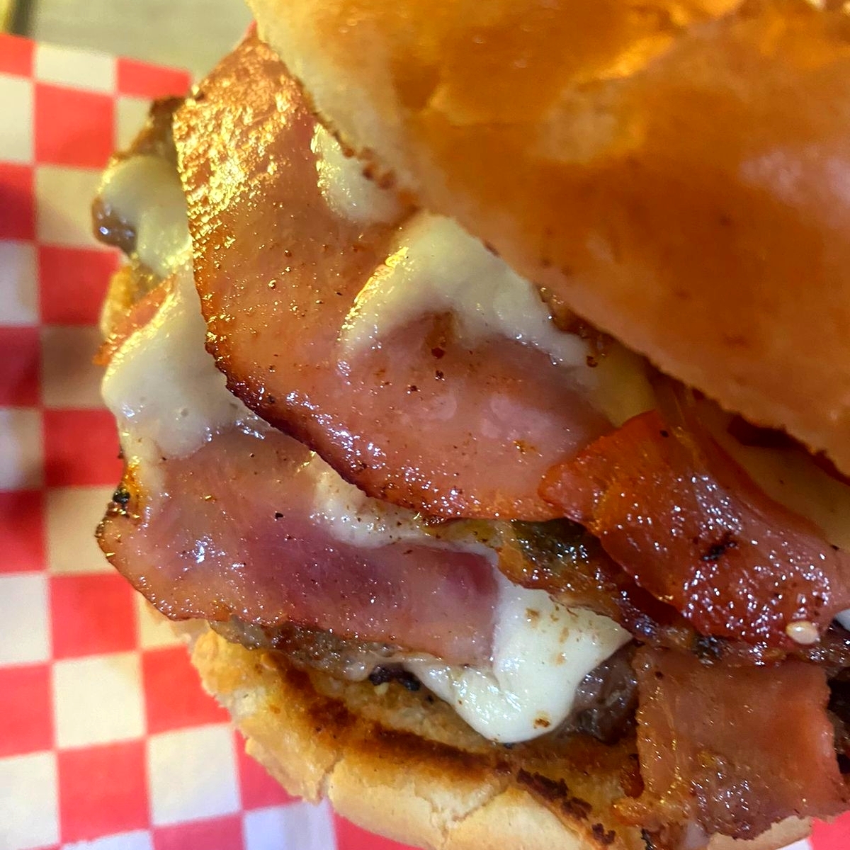 Carne casera, tocino, triple queso amarillo y queso blanco