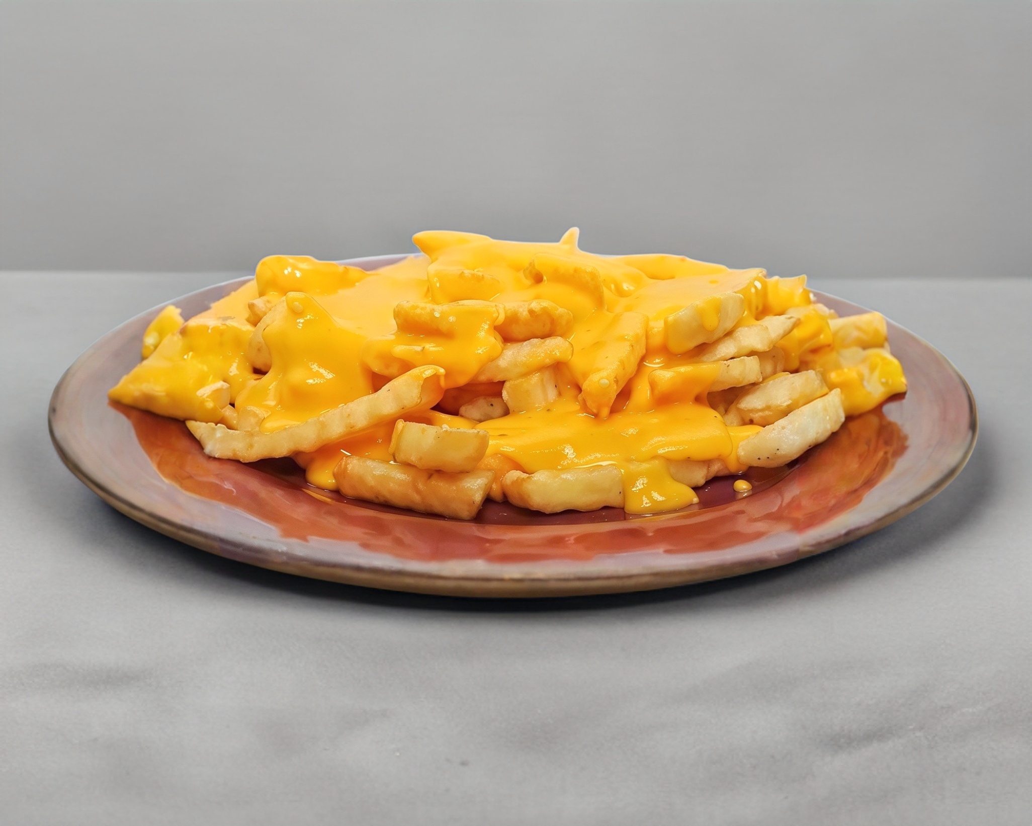 Orden de papas fritas con 3 salchichas envueltas en tocino con queso de nachos