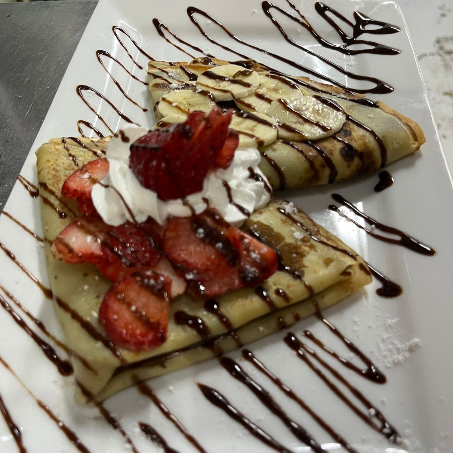 2 crepas fresas,nutella y platano,queso crema