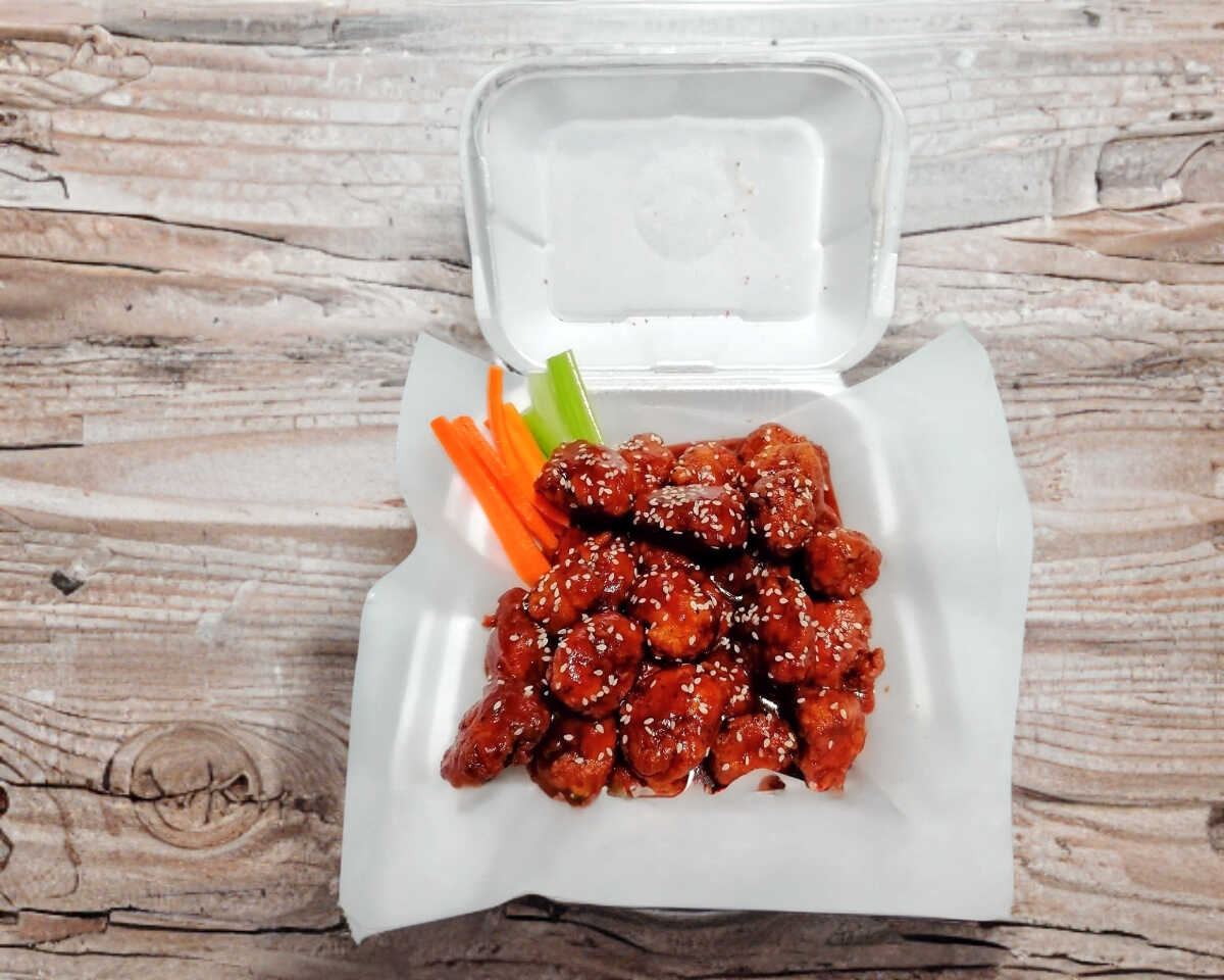 Pedazos de pechuga , bañados en salsa búfalo ,aprox de piezas 8 o 9