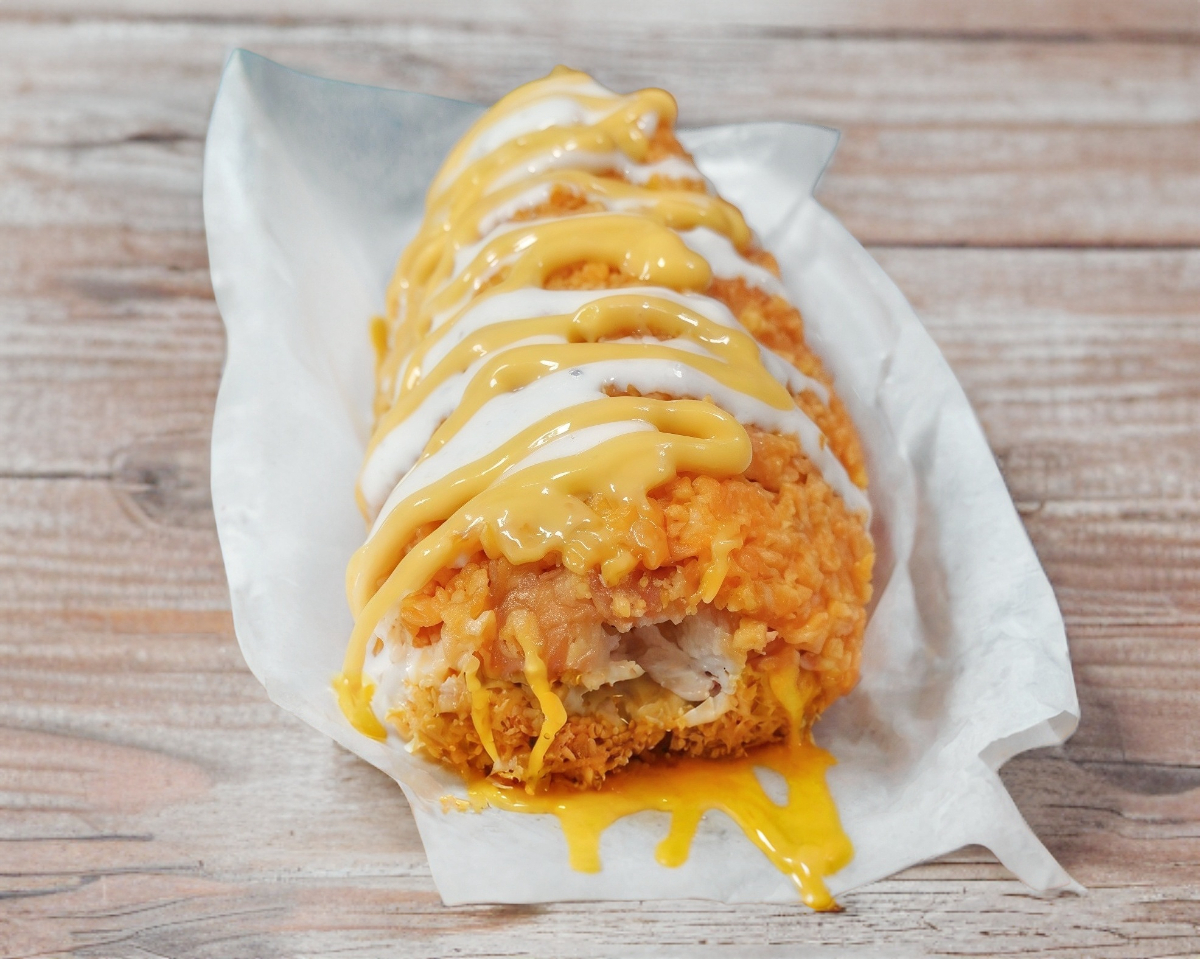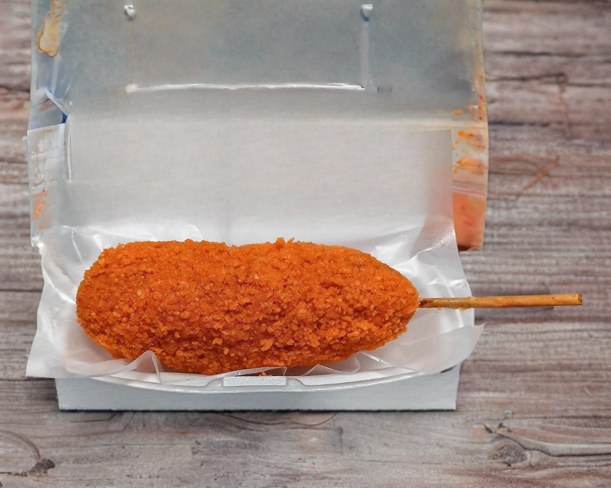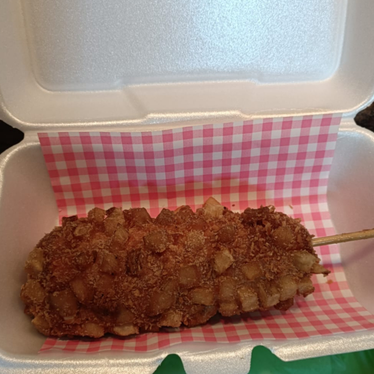 Banderilla coreana rellena de salchicha y queso , empanizada con panko y cheto queso