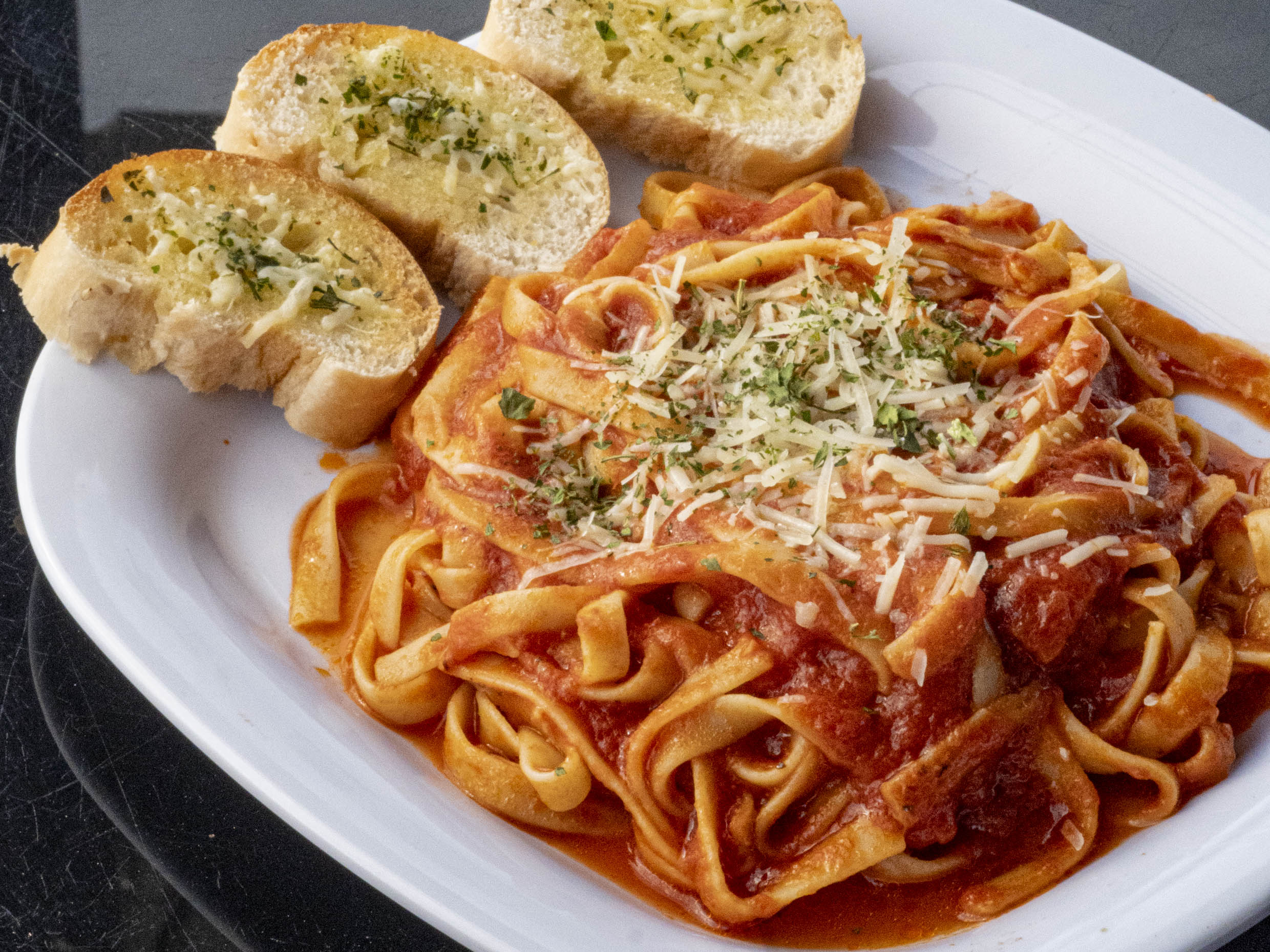 Chorizo, tocino, Jamon, Champiñones y Salsa Alfredo