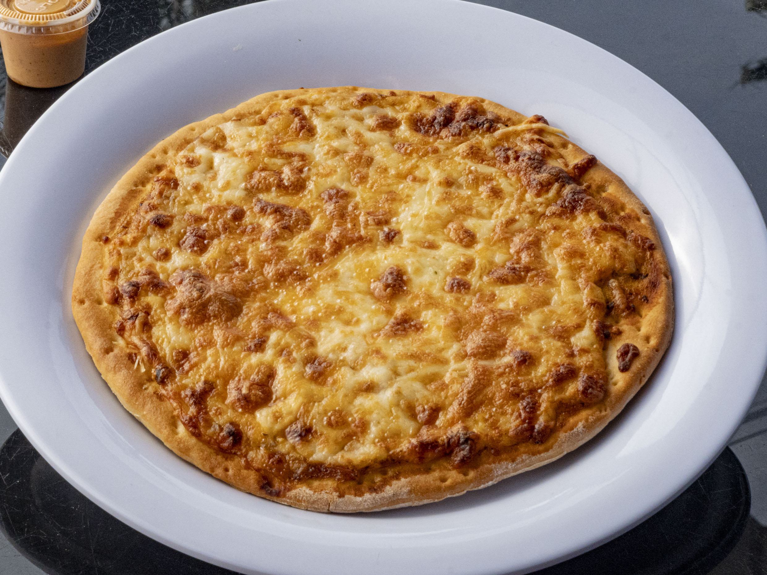 Pizza de 14 pulgadas, trae 8 porciones, con pepperoni y queso