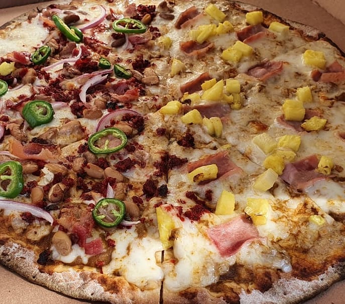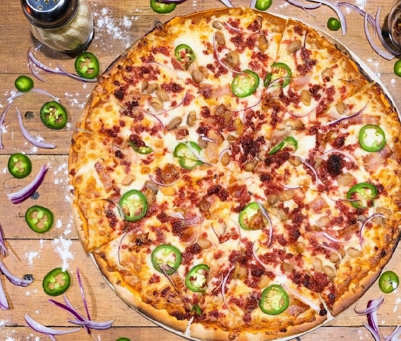 Peperoni- Frijol, Chorizo, Tocino, Jalapeño, Cebolla Morada