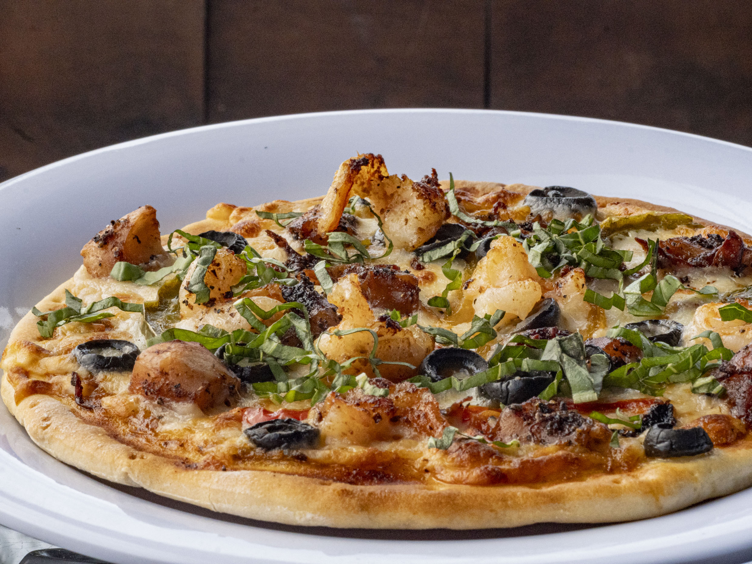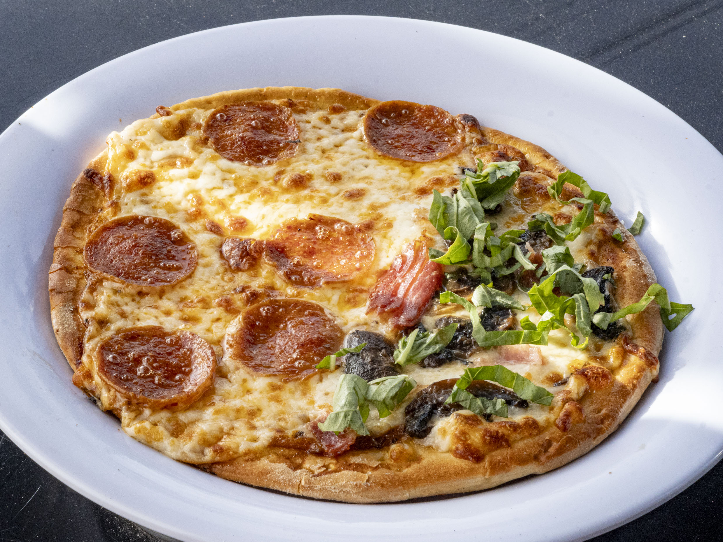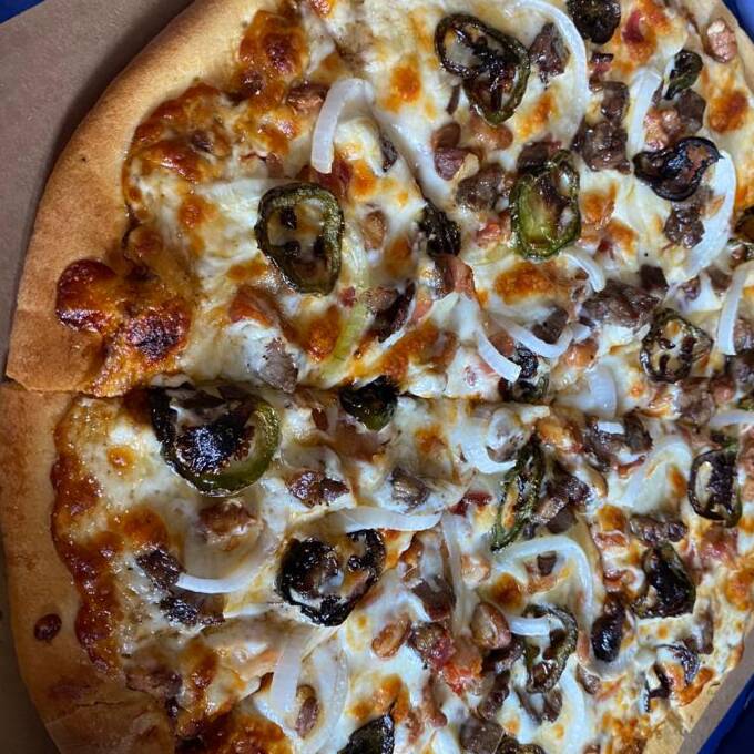Peperoni, Jamon, Pimientos, Aceituna negra, Salchicha Italiana, Cebolla Blanca