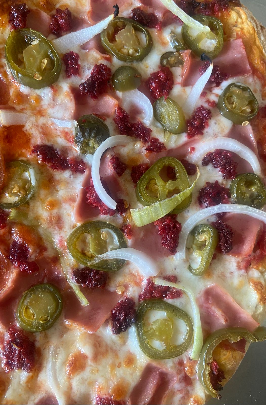jamón,chorizo,frijol,cebolla,chile jalapeño