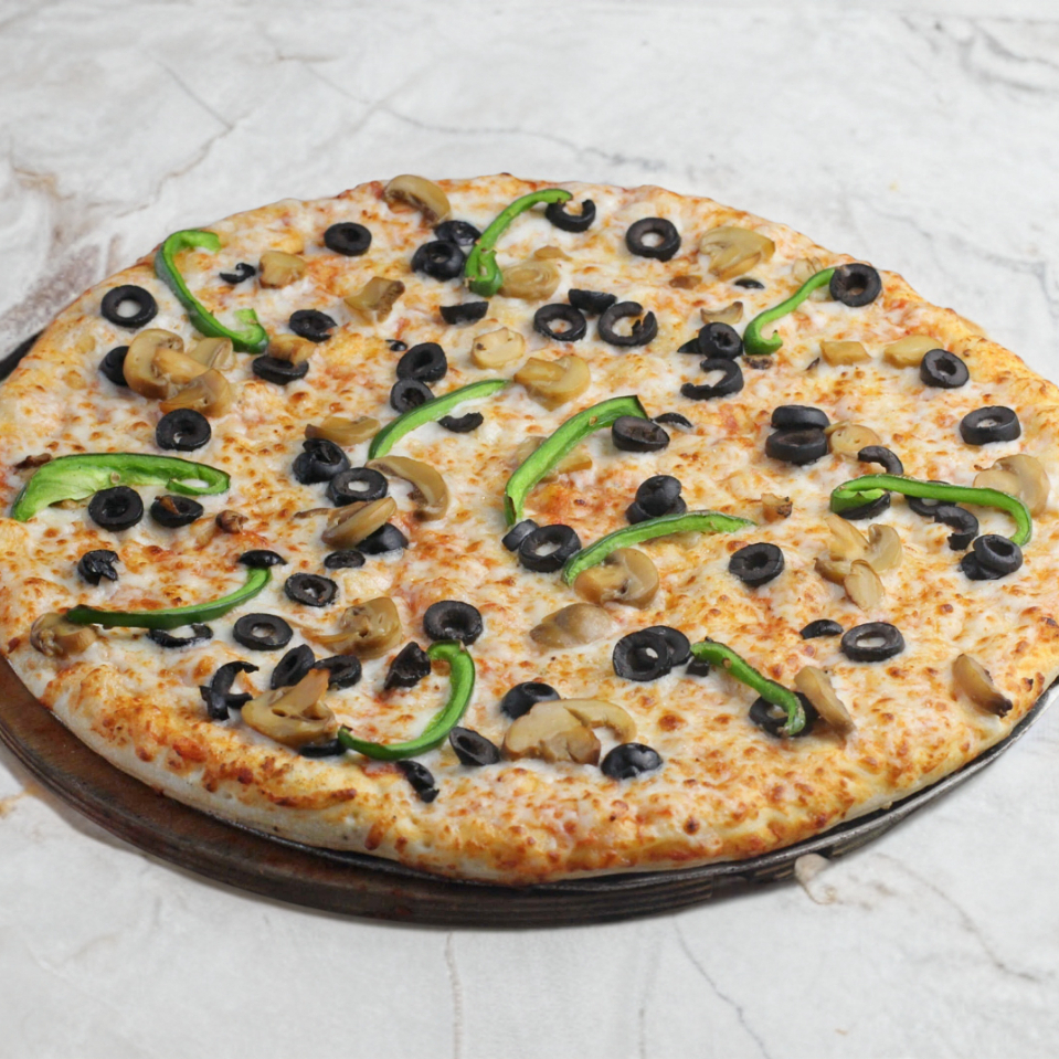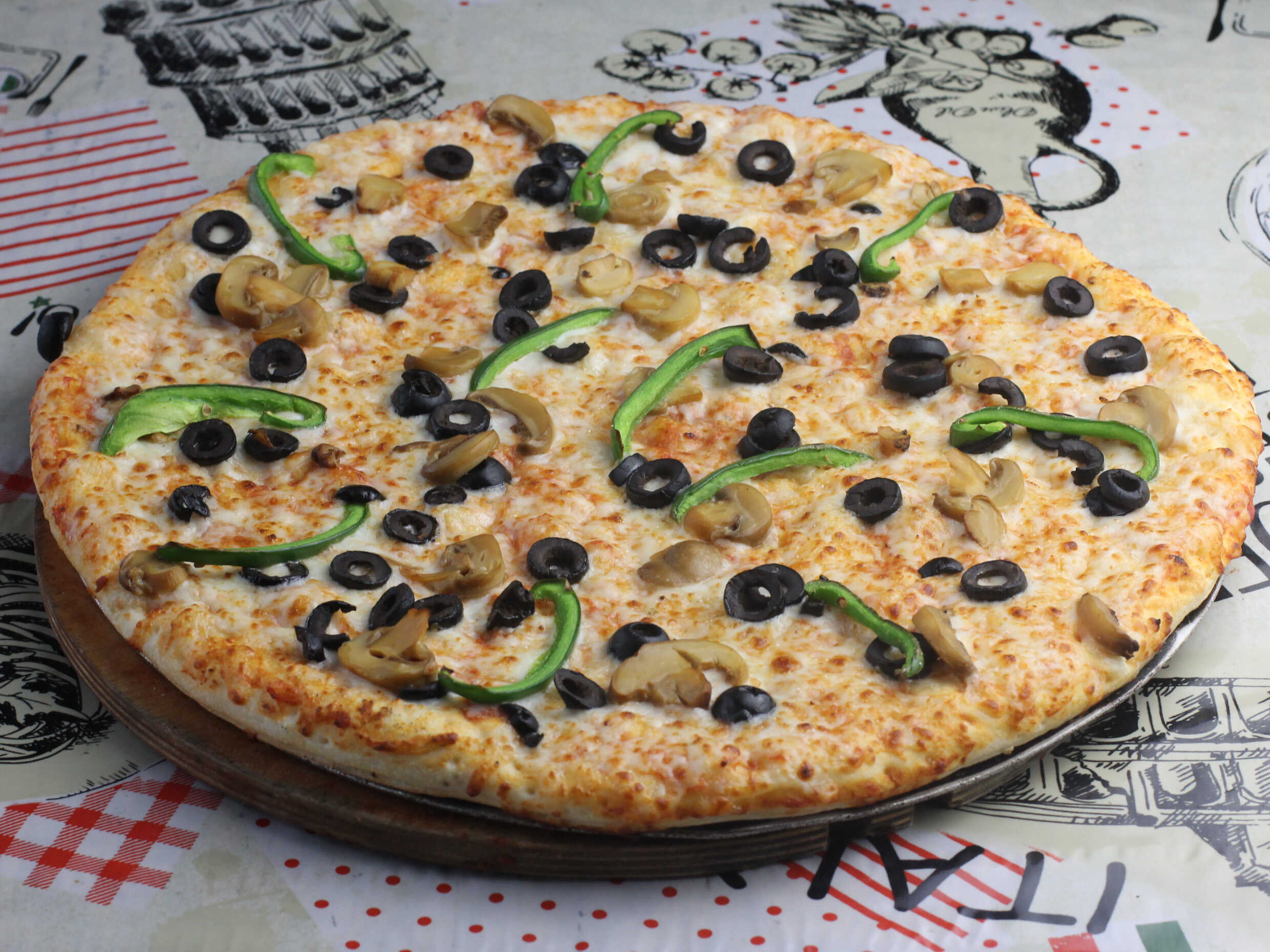 Queso Mozzarela, champiñones, aceitunas y pimiento verde.